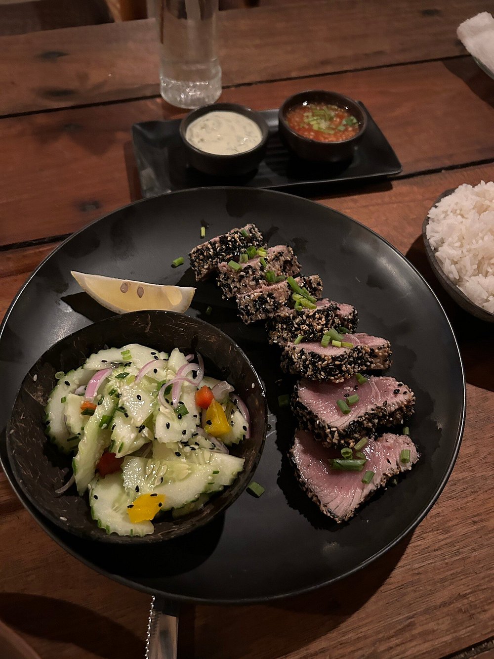 Wonderful dinner, there was live music, the food was incredible and the cocktails as well! The service was impeccable and the waiters spoke a perfect English.